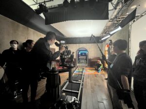 映画・映像業界のプロが作成した短編映像作品の台本・セットに沿って,仕込みから本番撮影までを,「撮影」・「照明」・「録音」・「美術」・「演出」に分かれて、体験できるワークショップです。